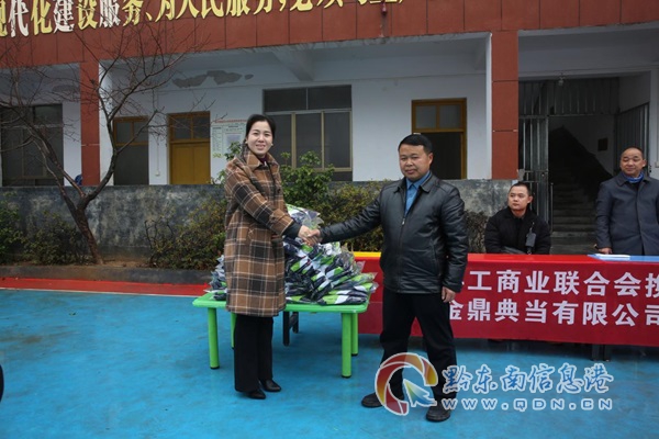 黎平縣工商聯副主席、登杠駐村干部吳義理、肇興鎮黨委的有關負責人、登杠村黨支部書記、登杠小學校長在球場舉行了發放儀式。
