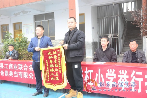 捐冬衣活動結束后,登杠小學向愛心人士敬獻錦旗。