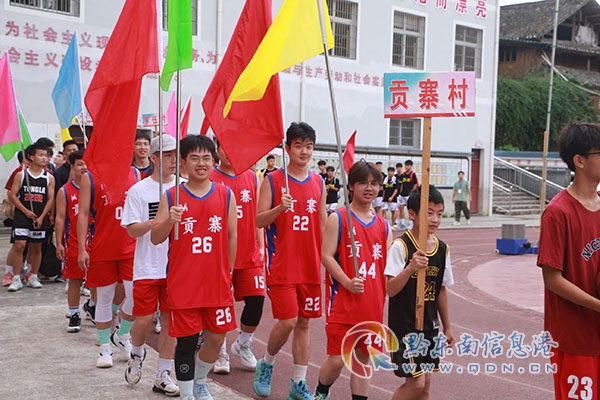 7月20日上午,貴州省第三屆“美麗鄉村”籃球聯賽黎平縣九潮鎮海選賽在九潮鎮中心小學拉開帷幕。開幕式由鎮全體干部職工、嘉賓、裁判員及19支代表隊共260余人參加。