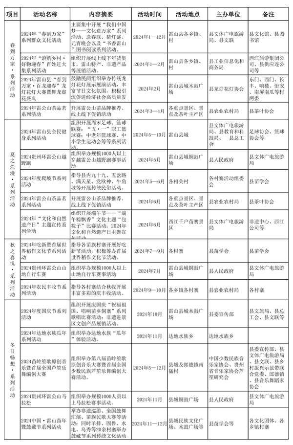 2024年雷山縣“四季歡歌”系列文體活動計劃表