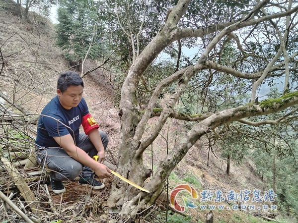 雷山縣方祥鄉農服中心在方祥鄉毛坪村巡林發現一株罕見的千年古茶樹。