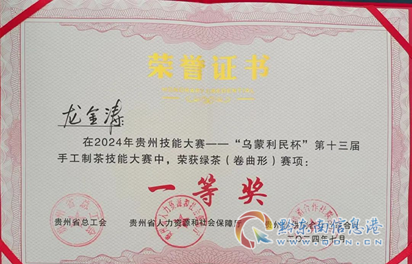據悉,此次比賽由貴州省總工會、貴州省人力資源社會保障廳、貴州省供銷合作社聯合社共同主辦,比賽集齊了全省制茶高手,經過緊張激烈的角逐及專家評審,雷山縣腳堯公司龍金濤以92.7的優異成績斬獲手工卷曲形綠茶賽項一等獎!