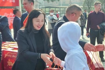 儀式結束后,大家整齊有序排隊出發,貴州省郵政公司向在場外出務工人群發放魔芋刺梨凍、刺梨醬、藍莓干等特色農產品愛心禮包,向其傳達殷切的希望和祝福:返崗一路平安,開工順順利利,技能不斷提升,不憂“薪”不憂“酬”!期間,省公司副總經理張霞向排隊的務工人員送去新春祝福,并親切詢問務工地點,叮囑外出務工要提高安全意識,保證自身安全,注意金融財產安全,確保健康安全返崗。