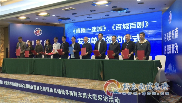 現場,來自全國地市新聞網聯盟各理事、會員單位負責人及地州市級(區縣級融媒體中心)主流媒體的社長、主任、總編輯、臺長、總經理等相關負責人和骨干記者;各級特邀新媒體專家和領導嘉賓;參與活動宣傳報道的各級各類媒體記者、網絡達人和工作人員等,共計約200人匯聚一堂,進行村超體旅融合項目專題介紹、新媒體建設經驗交流分享、新技術新項目新聞發布、《百城百劇》、《直播一座城》及《尋美黔東南》項目簽約啟動儀式、新媒體典型案例及大賽頒獎等活動內容。