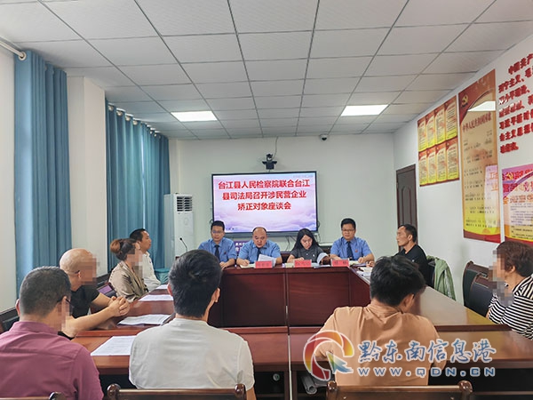 為充分履行刑事執(zhí)行檢察職能,落實(shí)好最高檢“檢察護(hù)企”專項(xiàng)行動(dòng)相關(guān)工作要求,進(jìn)一步規(guī)范和提升臺(tái)江縣社區(qū)矯正工作質(zhì)效,6月12日,臺(tái)江縣檢察院聯(lián)合縣司法局召開涉民營企業(yè)社區(qū)矯正對(duì)象座談會(huì)。