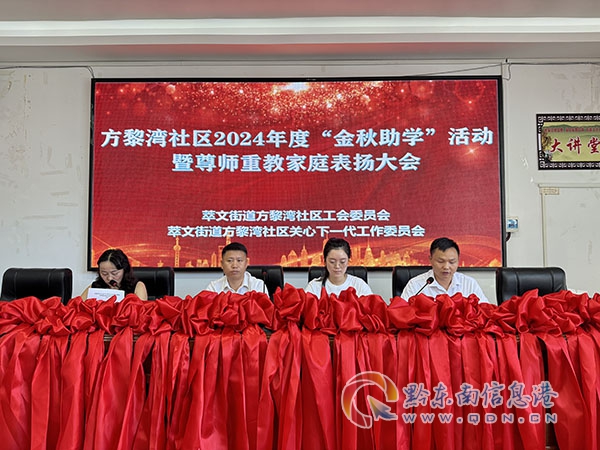 本網訊 8月27日,方黎灣社區開展2024年度“金秋助學”活動暨尊師重教家庭表揚活動。參加本次活動的有萃文街道黨工委、方黎灣社區“兩委”、駐村工作隊、優秀高考學生、尊師重教家庭、社區黨員群眾代表。
