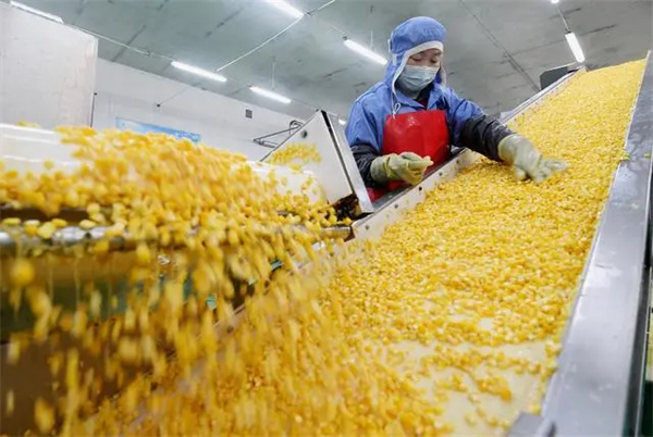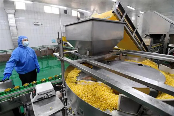 12月8日,在河北省晉州市一家罐頭食品加工企業,工人在玉米罐頭生產線上工作。新華社記者 楊世堯 攝
