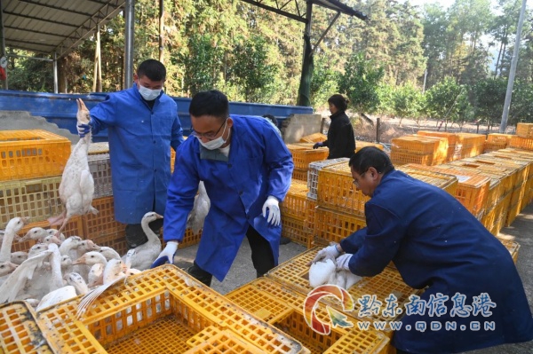 走進平略鎮甘烏藥園坡種養殖基地,鵝叫聲不絕于耳,成群的大白鵝毛色光亮、體態健碩,它們成群結隊在樹林里埋頭覓食。遠遠望去,大鵝奔跑的路線形成了白色的浪濤,與正在忙碌著的工作人員共同勾勒出一幅豐收景象。