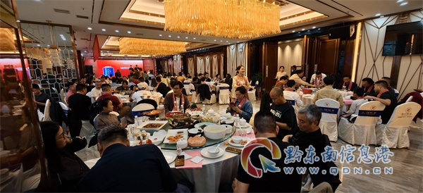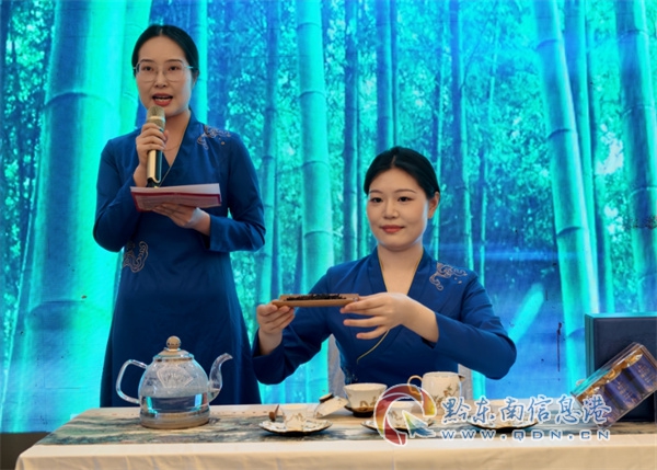 簽約儀式結束后,嘉賓們沉浸在國繽茶品鑒環節中。專業茶藝師以精湛技藝沖泡茶品,搭配品牌文化影片展播,全方位展現出黔茶從采摘到制作的匠心全過程。晚宴期間,熱情洋溢的苗族敬酒舞點燃現場氣氛,隨后的抽獎環節更是送出華祥苑茶禮、金磚白茶等特色獎品,讓嘉賓們對品牌文化有了更深刻的體驗。