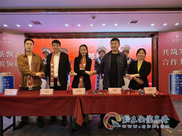 活動高潮當屬兩輪戰略簽約儀式。首輪簽約中,華祥苑黔東南區域總經理林春梅與來自貴州、重慶、福建等地的代理商代表成功簽署合作協議,標志著國繽茶銷售網絡向多省份延伸拓展;第二輪簽約則聚焦本地茶企深度合作,華祥苑與貴州雷山腳堯茶業達成戰略合作,雙方將攜手開發特色茶產品,共同推動本地茶園標準化管理及深加工技術升級。兩輪簽約達成的多項合作協議,為黔茶產業鏈延伸與市場拓展筑牢堅實基礎。