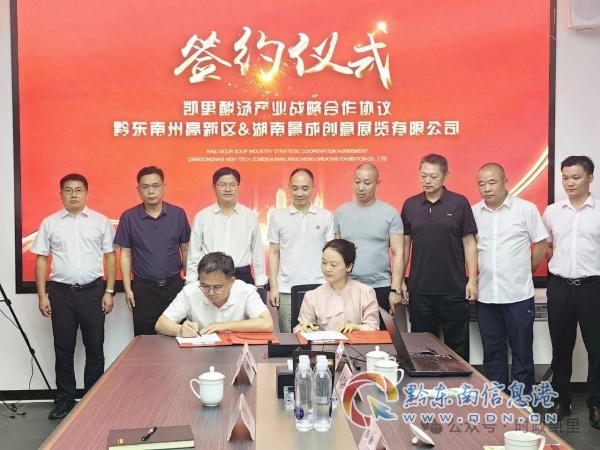 5月21日下午,考察組到訪湖南省長沙市湖南景成創意展覽有限公司。在公司董事長劉敏陪同下,考察組參觀了企業總部并舉行座談。座談會上,企業詳細介紹了“凱里酸湯”品牌推廣、產業連鎖經營以及供應鏈管理等方面的合作方案和專業優勢。譚夔說,凱里酸湯鮮香味美,老少皆宜,獨有的苗侗文化為凱里酸湯賦予了特有的民族魅力。作為“中國酸湯美食之都”,凱里市正著力推動酸湯產業從文化價值向商品價值轉變、從傳統工藝向現代產業轉變、從地方特色向全國品牌轉變。湖南景成創意展覽有限公司在推進“文化+創意+科技”深度融合、品牌策劃和營銷推廣方面有著先進的理念和豐富的經驗,希望與企業進一步加深合作,共同推動“凱里酸湯”品牌走向更廣闊市場。經過磋商,雙方達成合作共識,并現場簽訂了戰略合作協議。