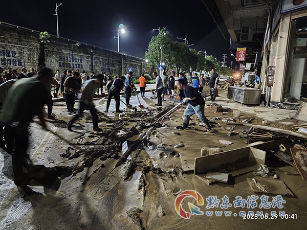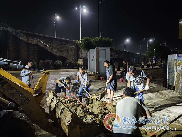 自6月25日馳援榕江縣以來,凱里市農業農村局50名干部職工已連續奮戰4天,清淤工作初見成效。然而,6月28日,新一輪洪峰突襲,榕江縣城區再度告急!