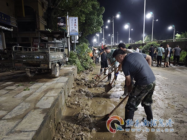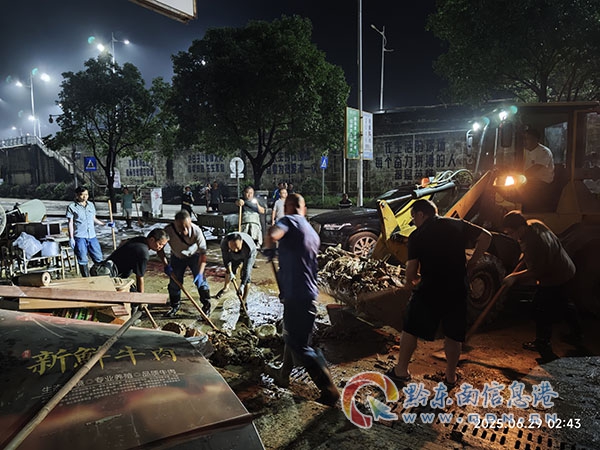 一聲令下,使命必達!29日凌晨,疲憊未消的隊員們再次集結,披星戴月投入戰斗。黑暗中,探照燈照亮泥濘街道,鐵鍬鏟起厚重淤泥的聲響、掃帚清掃的沙沙聲,奏響清淤“戰歌”。盡管已是深夜,困意與疲憊不斷襲來,但他們沒有一個人停下手中的動作。“早一點完成清淤,群眾就能早一點恢復正常生活!” 這是現場每一位工作人員的心聲。