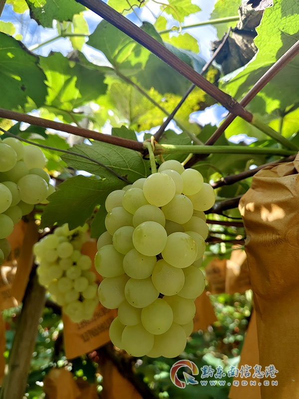 走進海星村沙子灣張玉平家,晶瑩剔透的“水晶葡萄”與紫紅飽滿的“紅玫瑰”交相輝映,繪就了一幅鄉村振興的甜蜜圖景。他家種葡萄已有30余年,從父輩年輕時開始種植,葡萄種植技術現傳承到了他這,現在10余畝果園畝產穩控在2000斤左右。如今線上微信售賣、線下擺攤兩頭忙,每天天不亮就摘滿筐,拉到凱里市區叫賣,一天能銷300斤左右。