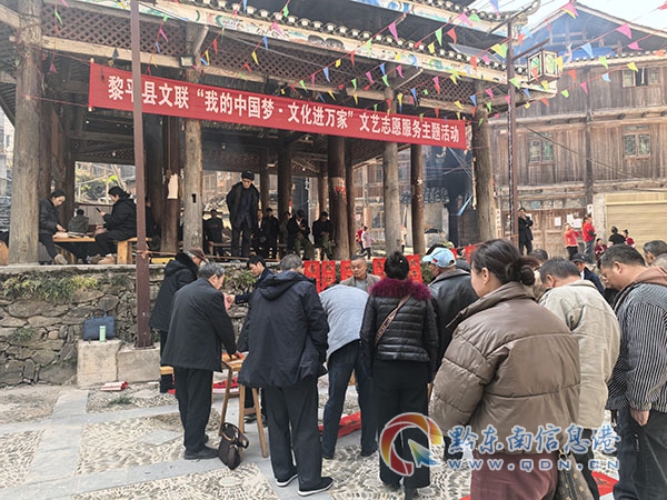 本網訊 “墨香戲韻迎新春 文化惠民暖人心”。為深入貫徹落實黨的文化惠民政策,豐富基層群眾的精神文化生活,1月14-15日,黎平縣文聯精心組織文藝志愿服務隊,赴中潮鎮黃堡村和肇興鎮廈格村,開展別開生面的“送春聯,戲曲表演”活動,為當地群眾提前送上了新春的美好祝福,帶去了精彩紛呈的文化盛宴。