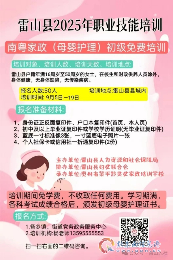 免費培訓(xùn)!雷山縣2025年職業(yè)技能南粵家政(母嬰護理)初級培訓(xùn)報名開始啦!