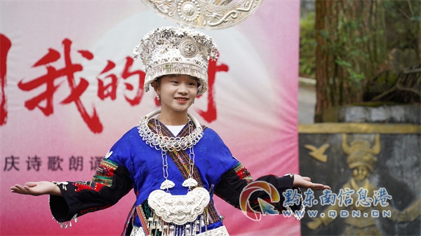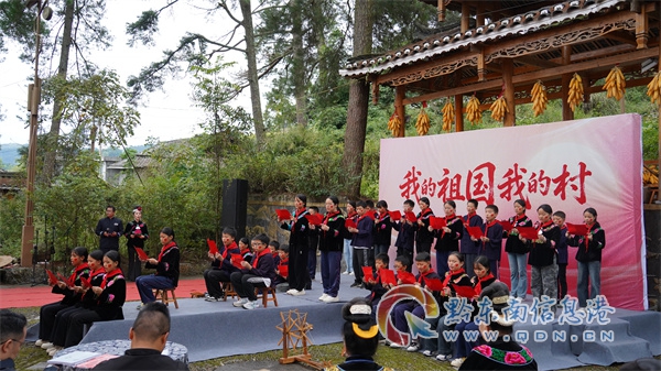 活動現場,苗族古歌隊身著傳統盛裝,以悠揚吟唱拉開序幕,古老的曲調瞬間將在場村民與游客帶入濃郁的苗文化氛圍中。隨后,《雷公山下,我以苗歌頌祖國》《一個從詩行里走來的山村》《貓貓河村》等一首首扎根鄉土的原創詩歌輪番上演,朗誦者或以渾厚嗓音傳遞家國大愛,或以細膩語調訴說村寨變遷,字里行間滿是對家鄉的眷戀與對祖國的祝福。固魯小學學生集體朗誦的《雷山賦》更是引發全場共鳴,稚嫩童聲中透著對家鄉山水的熱愛,展現出文化傳承的新生力量。