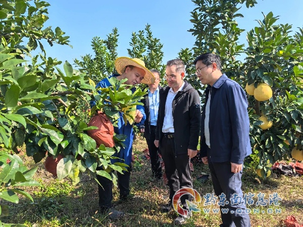 在渡馬鎮(zhèn)共和村,趙明波來到共和村的鳳柚基地。他詳細(xì)了解鳳柚的秋季管護(hù)、掛果及品牌建設(shè)情況,強(qiáng)調(diào)要加強(qiáng)肥水管理和綠色防控,提升果品品質(zhì),強(qiáng)化品牌打造與精深加工,提升市場(chǎng)競(jìng)爭(zhēng)力。同時(shí),趙明波還強(qiáng)調(diào)要?jiǎng)?chuàng)新用好功夫村旅游資源,結(jié)合鳳柚等特色農(nóng)產(chǎn)品,打造集觀光、采摘、體驗(yàn)為一體的農(nóng)旅融合項(xiàng)目,通過鄉(xiāng)村旅游帶動(dòng)農(nóng)民增收,為鄉(xiāng)村振興注入新活力。