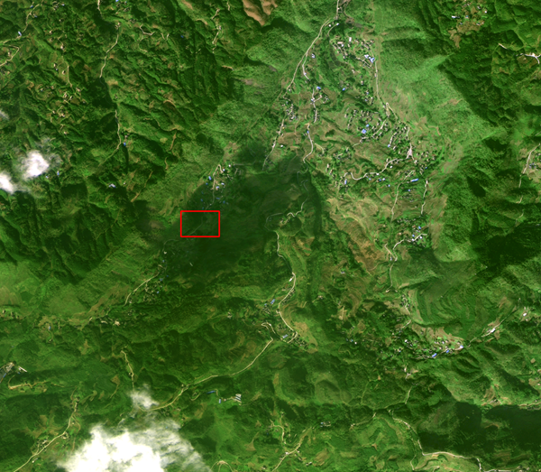 ▲東坡號衛星拍攝的四川省宜賓市筠連縣沐愛鎮金坪村衛星影像圖