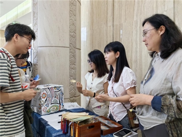 展廳中特別設置的投影放映區、閱讀區、觸摸屏翻閱區、古籍紙張展示區、民族祝福語印章打卡區、觀展答題區等互動空間,深受年輕觀眾喜愛,吸引了大量觀眾積極參與。大家在品讀典籍、欣賞文字、聆聽古歌、觸摸紙張、收集印章、探索答案的過程中拉近了與古籍的距離,有效地提升了全社會對民族古籍工作的關注度。