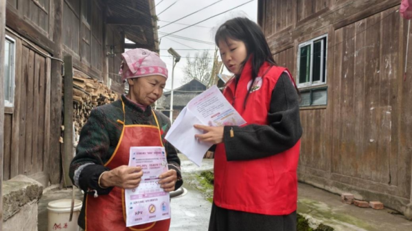 1月26日至2月20日,實踐隊相繼在貴州省黔東南州黎平縣、黔西南州普安縣、黔南州獨山縣等地開展線下宮頸癌科普宣講活動,建立“入戶走訪、社區宣講、數字化推送”的三線聯動模式。隊員們分小組深入黔東南自治州、縣的苗、侗等少數民族村寨、社區服務中心、農貿市場,攜圖文宣傳手冊和可視化展板,用當地特色方言和普通話交替講解HPV疫苗接種與篩查流程。同時使用實踐隊自主構建的宮頸癌科普小程序及AI智能體進行科普宣傳,現場演示如何通過語音或圖片上傳獲取篩查建議、注意事項與預約流程。