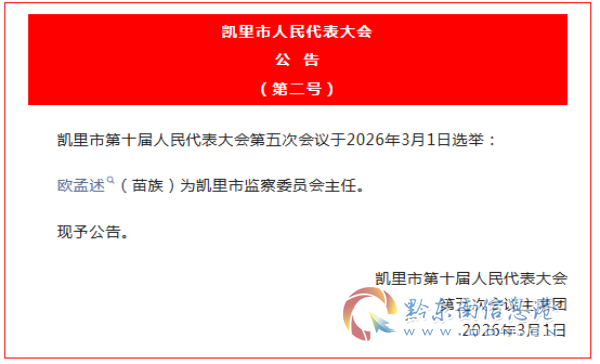 凱里市人民代表大會公告第二號