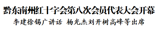1月13日,黔東南州紅十字會第八次會員代表大會在凱里開幕。省政協副主席、州委書記李建,省紅十字會黨組書記、常務副會長徐錫廣出席并講話。州委副書記、州長楊光杰,州人大常委會黨組書記劉開樹,州委副書記、州政協黨組書記高峰,州領導譚海、羅青、王建華、楊政宇出席。州委常委、州委宣傳部部長、州委統戰部部長龍家勝主持開幕會。