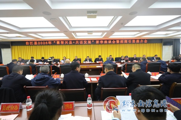 2月12日,臺江縣召開2026年“聚智興縣·共話發展”新春座談會暨招商引資推介會。會議通報了臺江縣經濟社會發展情況,與會人員觀看了臺江縣招商引資宣傳片,聽取了臺江縣智力支鄉會工作視頻匯報,并就推動臺江縣經濟社會高質量發展建言獻策。