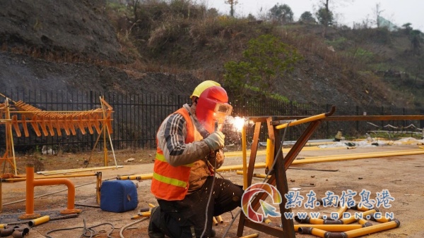 施工人員正在焊接管道