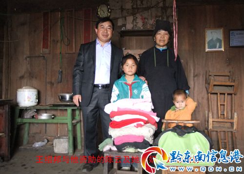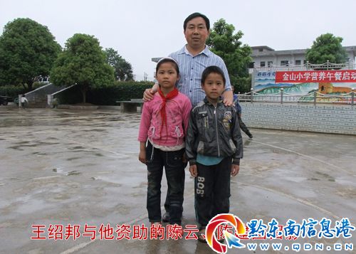 從2010年9月至今,王紹邦資助金山小學四年級孤兒陳云和一年級孤兒陳建國錢和物共計2300元。