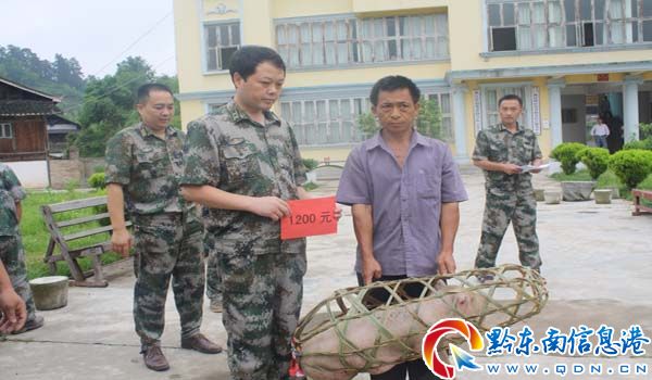 從江人武部羅利榮政委給貧困家庭送生產資金