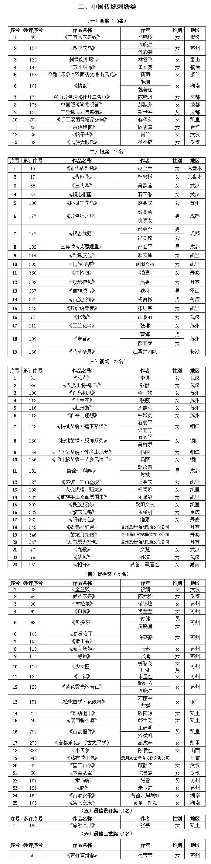 2012中國·凱里銀飾刺繡博覽會參評作品獲獎名單