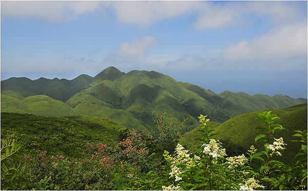 來到草場望一眼,就再也不想離開,只見整個草場綿延起伏10多公里,空曠的草場一望無際,燦爛的陽光與層林與草場構成一幅層次鮮明的畫卷,讓人浮想聯翩。層層疊疊的山巒,在綠色中流動,是草,是花,是木,是樹,是山,是海,是云朵掛在眼簾,讓我們仿佛置身于綠色的海洋,神仙的居所。此時依偎在戀人肩頭,看四周云山霧靄、綠韻悠悠,幸福之情溢滿心中。