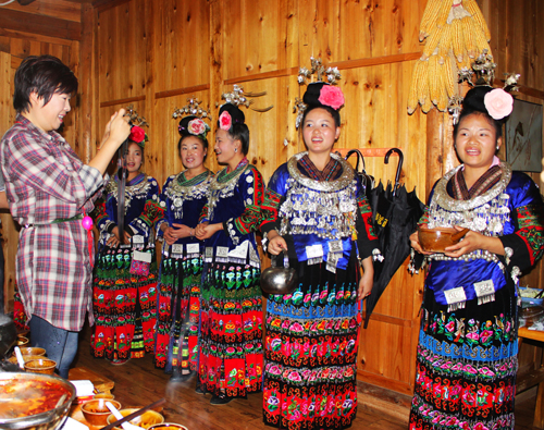 在西江苗族博物館,令她感慨萬分:“看完苗族的歷史館,讓我更堅信,我們老祖宗的幾千年文明,我們要好好傳承下去。現在的人們,看不起自己的文化,瞧不起自己祖先的文明,老想把自己的文化丟棄,老想追求時髦以使自己與國際接軌,但又不具備與國際接軌的條件,最后弄得自己土不土洋不洋。與其如此,還不如傳承好自己的文化,發揚自己的文化。當條件成熟,再與國際接軌也不遲。”在西江苗族博物館,她在留言簿上寫下“收藏傳統,祝福未來”的意見簽名。(李雪攝影報道)