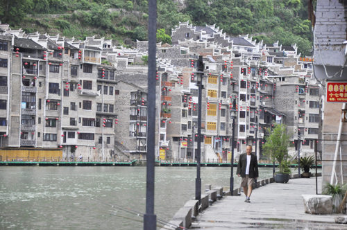 其實,最喜歡的還是在夜晚來臨的時候,坐在舞陽河邊小酌幾杯。紅樓格調的古鎮(zhèn)倒映在舞陽河上,如果不小心喝得微醺,還以為河對岸就是天堂。中午,坐著游船,從最下游一路水花四濺的朝祝圣橋駛去。我只能兩個字來形容這種感覺:“超爽!”(姚練)