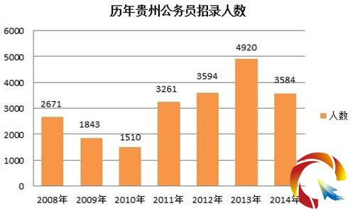 2014年貴州考試招錄公務員3584名,其中黔東南招收485名。由于黔東南公務員招錄降低報考條件,據(jù)相關統(tǒng)計,報考黔東南公務員人數(shù)達25915人,報考人數(shù)和招錄人數(shù)的平均比例達到了37.67:1。與去年報名情況相比較,報考人數(shù)基本持平,職位平均比增加了14個百分點。