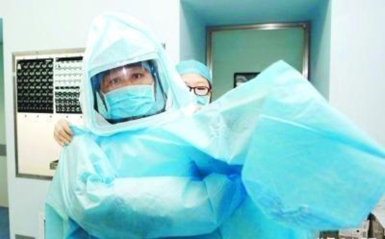 馮秀嶺醫(yī)生手術(shù)前全副武裝戴上“太空帽”