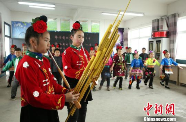 圖為興趣班的學(xué)生在吹奏蘆笙。 黃曉海 攝