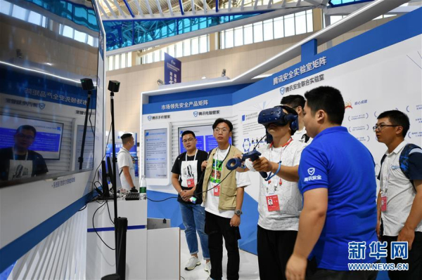 9月16日,嘉賓在2019年國家網絡安全宣傳周網絡安全博覽會上參觀體驗。 新華社記者 李然 攝