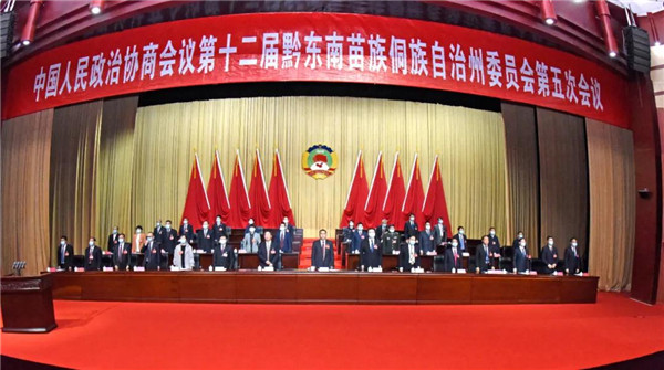 閉幕會(huì)應(yīng)到委員377人,實(shí)到 339 人,符合規(guī)定人數(shù)。列席會(huì)議的同志 46 人。會(huì)議表決通過(guò)了《中國(guó)人民政治協(xié)商會(huì)議第十二屆黔東南苗族侗族自治州委員會(huì)第五次會(huì)議決議》《中國(guó)人民政治協(xié)商會(huì)議第十二屆黔東南苗族侗族自治州委員會(huì)第五次會(huì)議提案審查情況的報(bào)告》。會(huì)議補(bǔ)選賀代宏、王鎮(zhèn)義2名同志為政協(xié)第十二屆黔東南州委員會(huì)副主席,李興旺、胡素灤、彭暉、潘秀宇4名同志為政協(xié)第十二屆黔東南州委員會(huì)常務(wù)委員。并對(duì)孔成岳等37名脫貧攻堅(jiān)優(yōu)秀州政協(xié)委員予以表?yè)P(yáng)。