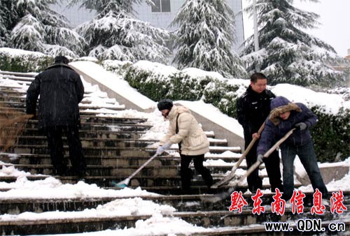大雪封路岑鞏干部職工奮力除雪(圖)