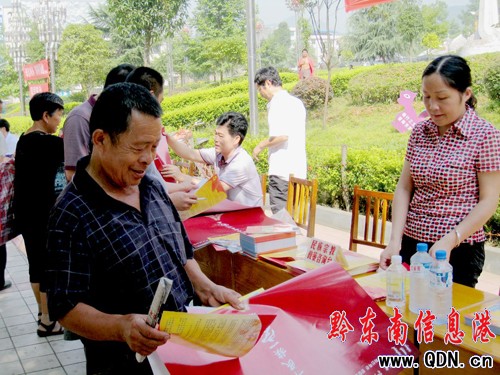 8月3日上午,岑鞏縣民族團結進步宣傳月活動在縣人民廣場啟動。中共岑鞏縣委宣傳部、縣民族宗教事務局、縣司法局、縣文體廣電旅游局等縣直機關單位參加了活動。通過懸掛標語條幅、展板,發放民族團結、科技知識、政策法規等各類書籍和宣傳材料,以及現場咨詢等形式,向各族群眾廣泛宣講黨的民族理論、民族政策、民族法律法規等。(張維軍)