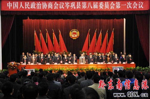 在雄壯的國歌聲中,中國人民政治協(xié)商會(huì)議第八屆岑鞏縣委員會(huì)第一次會(huì)議勝利閉幕!(楊政權(quán))