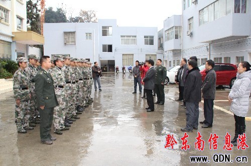 在武警中隊,縣委副書記龍安躍一行,顧不上在斗里鄉(xiāng)慰問的疲勞,又延著泥濘的盤山公路,匆匆趕到了武警中隊駐地,龍副書記代表縣委、縣政府給武警官兵帶去了祝福和問候,并著重強調(diào):武警官兵們在抗洪搶險、危房改造等急難險重任務(wù)面前,總是戰(zhàn)斗在第一線,為從江經(jīng)濟社會的發(fā)展起到了保駕護航作用。同時鼓勵官兵們再接再厲,再創(chuàng)新的佳績,并當(dāng)場贈送了慰問金8000元。