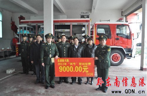 在消防大隊,縣委常委、常務(wù)副縣長肖金成縣及縣四大班子其他領(lǐng)導(dǎo),親切看望慰問了長年戰(zhàn)斗在防火滅火一線的消防官兵。慰問中,肖金成副縣長指出,2011年,消防大隊在縣委縣政府的正確領(lǐng)導(dǎo)下,在全體消防官兵的辛勤努力下,確保了全縣火災(zāi)形勢的平穩(wěn),圓滿完成了各項消防安全保衛(wèi)任務(wù),為全縣經(jīng)濟建設(shè)和人民安居樂業(yè)做出了突出的貢獻。他強調(diào),消防大隊官兵成功處置了各種“急、難、險、重”災(zāi)害事故,積極為地方群眾服務(wù),體現(xiàn)了消防大隊是一支“拿得上、打得贏”的消防鐵軍,是一支讓黨委政府放心的部隊,是一支人民群眾完全可以信賴的愛民部隊。春節(jié)即將來臨,他代表縣委、縣政府向消防大隊全體官兵致以親切的慰問和良好的祝愿,向全體消防官兵及其家屬拜個早年!并勉勵全縣消防官兵在新的一年里,積極進取,開拓創(chuàng)新,為從江縣經(jīng)濟發(fā)展和社會穩(wěn)定,為構(gòu)建和諧從江作出新的更大的貢獻。消防大隊大隊長張慶中代表全體官兵對縣委縣政府的關(guān)心和支持表示感謝,同時表示,在今后的工作中,大隊全體官兵將在縣委縣政府的領(lǐng)導(dǎo)下,繼續(xù)發(fā)揚艱苦奮斗、英勇頑強、創(chuàng)先爭優(yōu)的精神,努力提升社會抗御火災(zāi)能力和部隊滅火救援能力,努力提高執(zhí)法服務(wù)水平和服務(wù)經(jīng)濟的能力,以實際行動回報全縣人民和社會,真正做到“讓人民群眾滿意,讓各級黨委政府放心”。