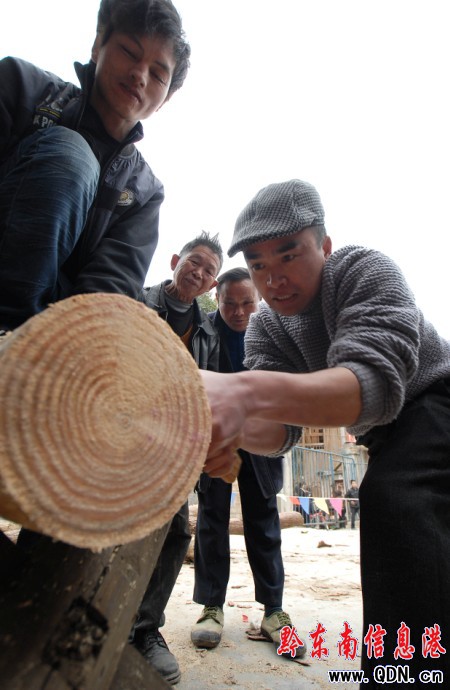 2月7日,貴州省丹寨縣揚(yáng)武鄉(xiāng)干改村,一名苗族村民在進(jìn)行據(jù)木頭比賽。