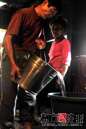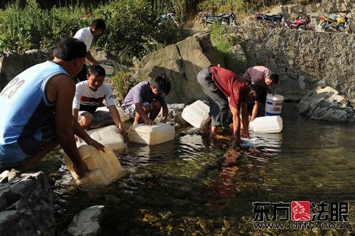 為了解決村民的飲水難問題,村支書熊光偉召集村里的黨員、入黨積極份子、青年團員,組成了一支10多人的摩托車運水隊,每天兩次往返于5公里外的小溪邊取水,把甘泉送到每一戶村民家中�!案兄x共產黨的領導,感謝送水隊的年青人!”村民感動地說。