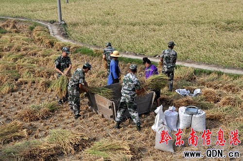 9月6日,丹寨縣消防大隊官兵來到龍泉鎮高排村幫助村民搶收水稻
