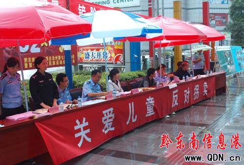 本港訊 (記者 廖強 攝影報道)6月1日,黔東南州打拐辦、州公安局、州婦聯、團州委、州綜治辦、州打黑辦6家單位聯合在凱里市大十字開展了“關愛兒童 反對拐賣”和“鏟除黑惡勢力 打造平安黔東南”宣傳活動。