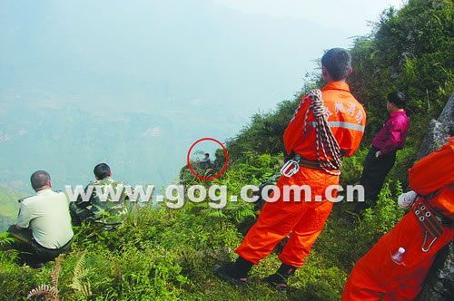 當日上午10:58,盤縣保基鄉一民工見其工友爬上一座30多米高的懸崖上欲尋短見,便撥打本報新聞熱線求助,本報記者轉報消防部門后,盤縣城關消防中隊消防特勤官兵直奔80多公里外的盤縣保基鄉,會同當地政府負責人和派出所民警趕往現場。14:35,救援消防官兵到達現場后,看到一名大約30歲的男子正蹲在一塊石板上,石板下是30多米高的懸崖,由于長時間蹲坐和饑餓,該男子已經出現神志模糊跡象。